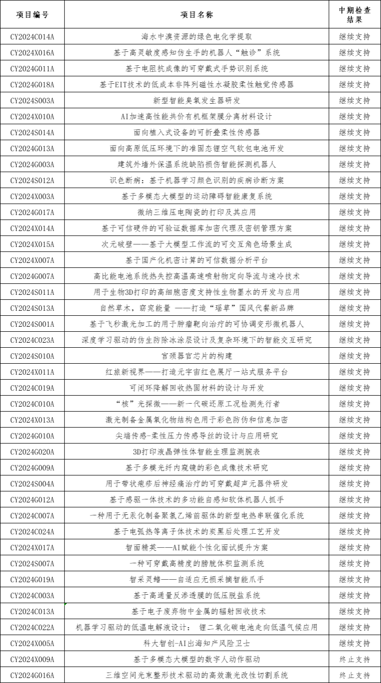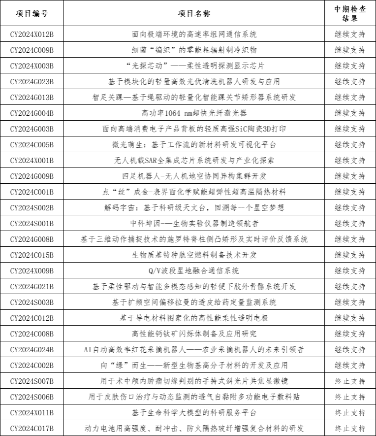 请获得“继续支持”的项目团队,按照项目任务书及中期检查评审中的专家意见,扎实推进项目开展,力争圆满结项。对于“终止支持”的项目团队,在本通知发布之日起停止项目经费使用。对于前期已经真实发生但尚未报销的开支,请并在本通知发布之日起7个工作日内完成相关报销事宜,逾期不再给予报销。