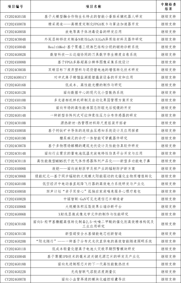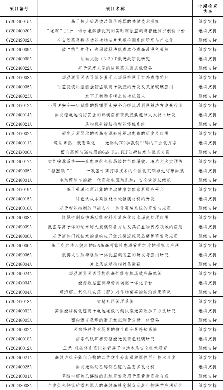 按照工作安排,根据《完美(中国)一站式服务平台开展2024学年“雏鹰基金”、“雄鹰基金”中期检查的通知》要求,经材料提交、走访核实、二次复核及专家评审,确定“基于极大望远镜边缘传感器的关键技术研究”等136个“雏鹰基金”项目作为继续支持项目;确定“基于WGM微腔的窄线宽激光器研发与产业化”等37个“雄鹰基金”项目作为继续支持项目。现将中期检查结果公布如下: