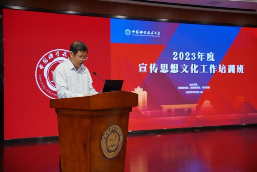 11月3日至5日,中国科大2023年度宣传思想文化工作培训班在安徽金寨干部学院顺利举办。3日上午,校党委书记舒歌群作开班动员讲话。党委副书记、党委宣传部部长邓建松主持开班式。各院级党组织书记、副书记、宣传委员、党务秘书,机关党委负责人,机关各支部宣传委员参加开班式。