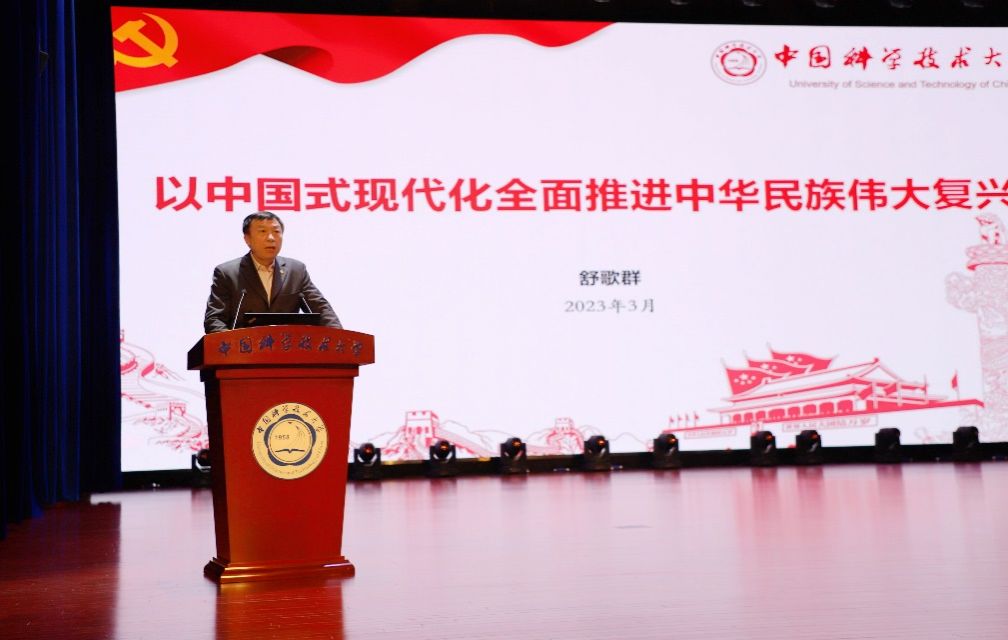 开班仪式后,舒歌群书记为培训班学员作题为《以中国式现代化全面推进中华民族伟大复兴》的专题报告。舒书记首先回顾了党的第二十次全国代表大会的基本概况,再就“现代化”概念的内涵探析、中国式现代化的探索与实践、中国式现代化的“和而不同”、党的二十大对中国式现代化的战略部署等四个方面进行了详细阐述。他期望学员们认真深入学习党的二十大精神,更加紧密团结在以习近平同志为核心的党中央周围,坚定不移听党话,跟党走,立志做有理想、敢担当、能吃苦、肯奋斗的新时代好青年,为深入实施科教兴国战略、人才强国战略、创新驱动发展战略贡献科大智慧,为以中国式现代化全面推进中华民族伟大复兴贡献科大力量。