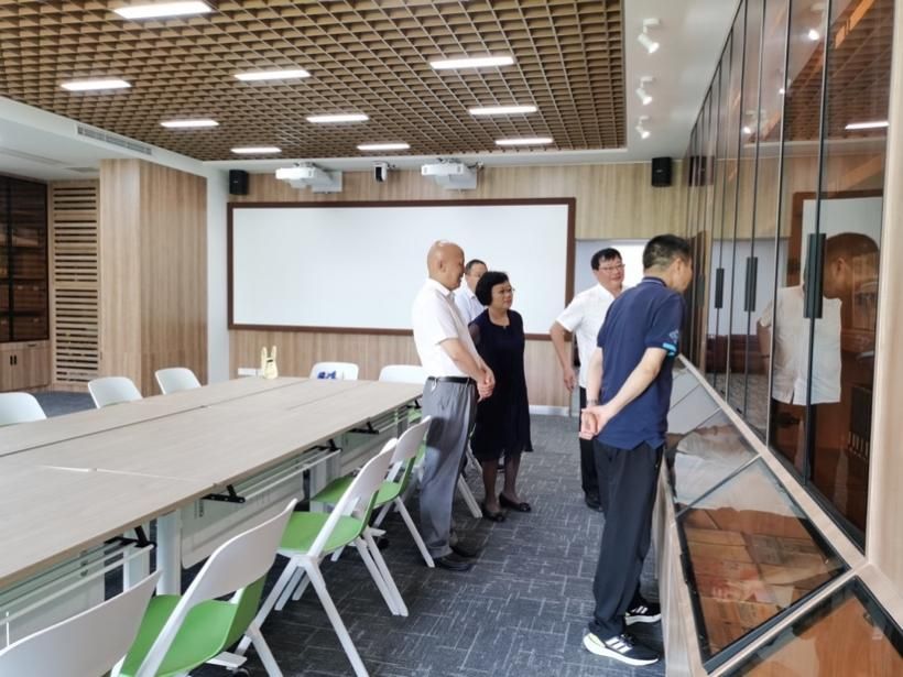 座谈会后,调研组一行参观了学院图书阅览室和智慧教室,学习数字化教学方面的经验。