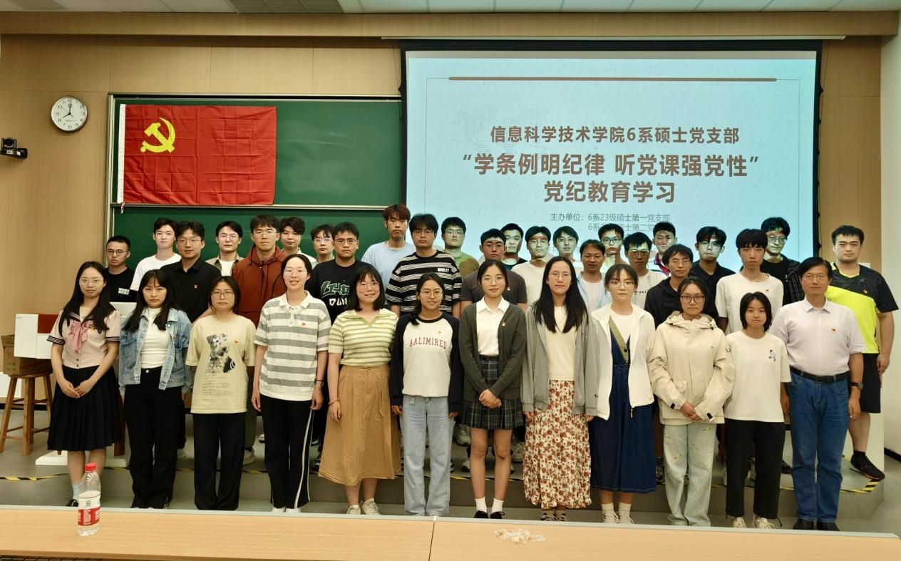 6月6日晚,信息科学技术学院党委书记李斌以“学条例明纪律 听党课强党性”为主题,给6系23级硕士第一党支部、硕士第二党支部讲授了一堂生动而精彩的纪律党课。