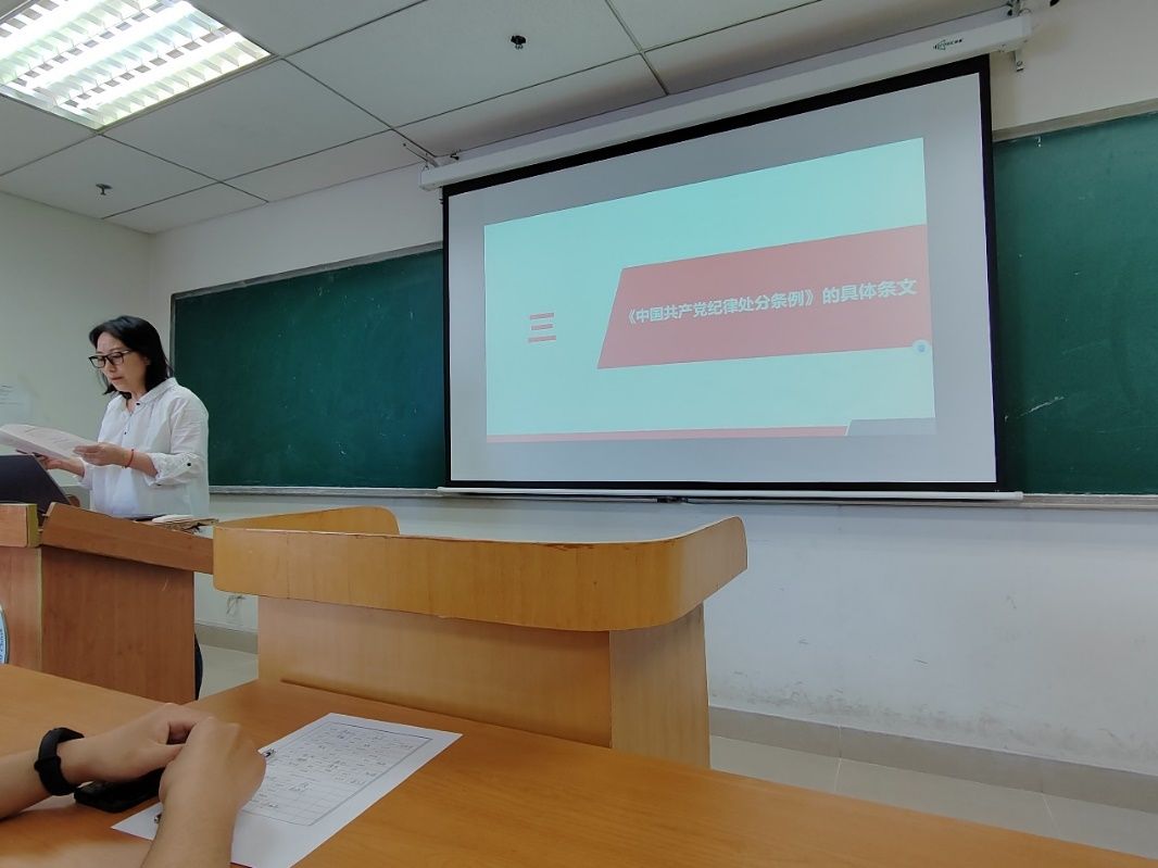 为深入贯彻全面从严治党要求,加强党员纪律教育,提升全体党员的纪律意识,数学科学学院研究生计算与应用数学第二党支部于5月15日下午4点,在学院会议室举办《中国共产党纪律处分条例》专题学习。本次会议由支部书记黄稚新主持并主讲。