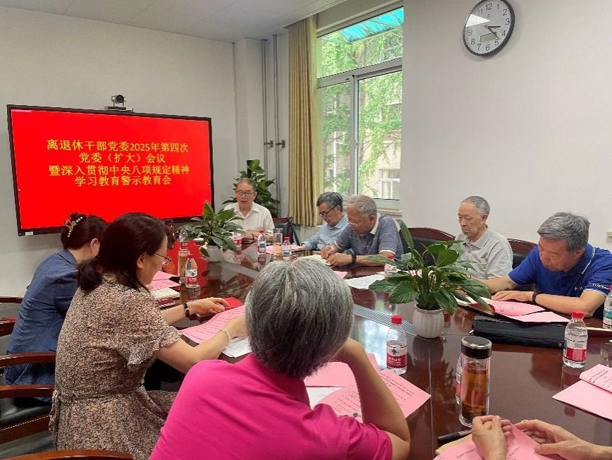 6月18日下午,离退休干部党委在东区离退休活动中心三楼会议室召开深入贯彻中央八项规定精神学习教育警示教育会,离退休干部党委书记万洪英主持会议,离退休干部党委全体委员参加会议。