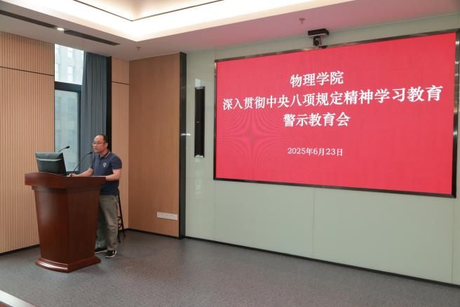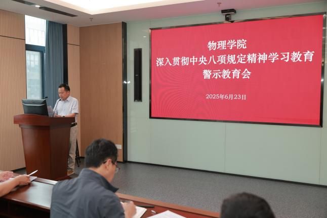 6月23日上午,物理学院党委在物质科研楼C601召开深入贯彻中央八项规定精神学习教育警示教育会。会议由学院党委书记周正威主持,学院领导干部、科级干部、师生党支部书记代表、党员教师代表共60余人参会。
