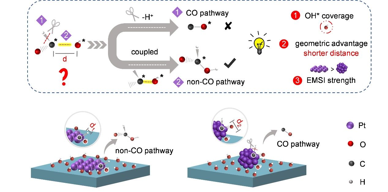 图1. 在甲醇氧化反应(MOR)过程中实现非CO路径的催化剂体系设计示意图