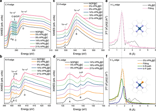 如何突破高金属负载量的原子级分散金属催化剂的制备是单原子领域的难题。同时,理解在高负载量下金属与金属之间的微观电子相互作用如何影响宏观催化行为对优化金属的覆载量至关重要。课题组通过简单的P锚定策略合成了一系列金属负载量为5%-21wt.%的Ir单原子催化剂(x-IrPN3@C,图3)。同步辐射XAS谱学阐明Ir-P配位结构的存在是实现Ir原子高负载量的内在原因。催化性能测试表明该催化剂的金属负载量和酸性OER催化活性之间的“正相关”关系不成立,而呈现出一个独特的“火山型”关系,其中位于中等金属负载量的14%-IrPN3@C催化活性最优。结合XAS、光电子能谱(XPS)和理论计算明确了金属负载量与酸性OER催化活性之间的“火山型”关系来自于活性位点的数量与高密度下活性位点本征活性降低之间的竞争。具体而言,当Ir负载量在一定范围内增加,会导致活性位点的数量增加,进而增强了OER催化活性。当Ir负载量持续增加并超过某个阈值时,相邻Ir原子之间相互作用增强,导致Ir的价态下降,最终降低了OER本征活性。此工作为设计更高效、更经济的单原子催化剂用于多种催化反应提供了理论指导。研究成果近期以“Investigation of the Relationship between Metal Loading and Acidic Oxygen Evolution Reaction Activity in Single-Atom Catalysts”发表在国际著名学术期刊《ACS 催化》上。ACS Catal. 2024, 14, 6, 3788–3797.DOI:10.1021/acscatal.3c06263