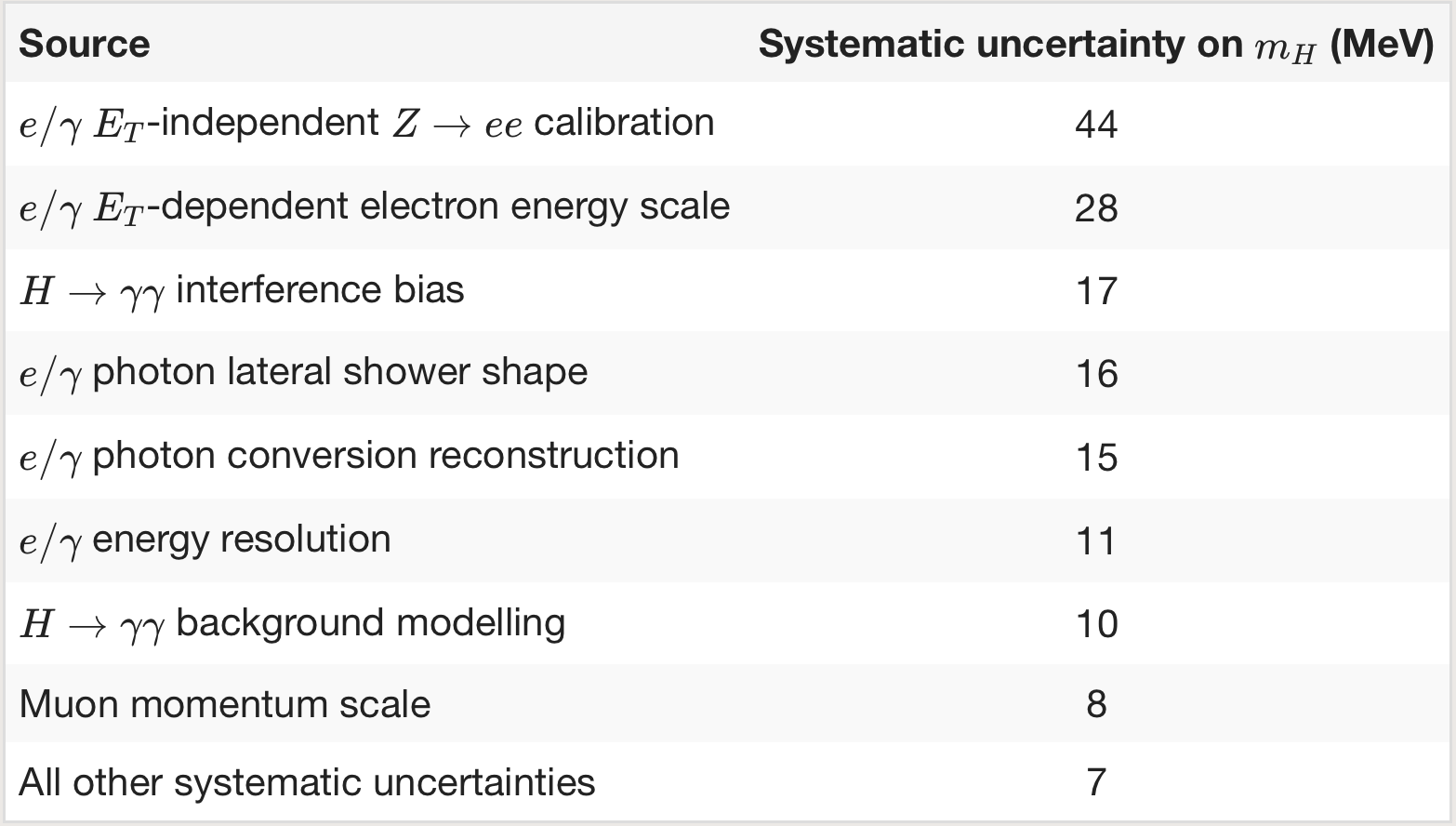 图2:希格斯玻色子质量测量系统误差分解